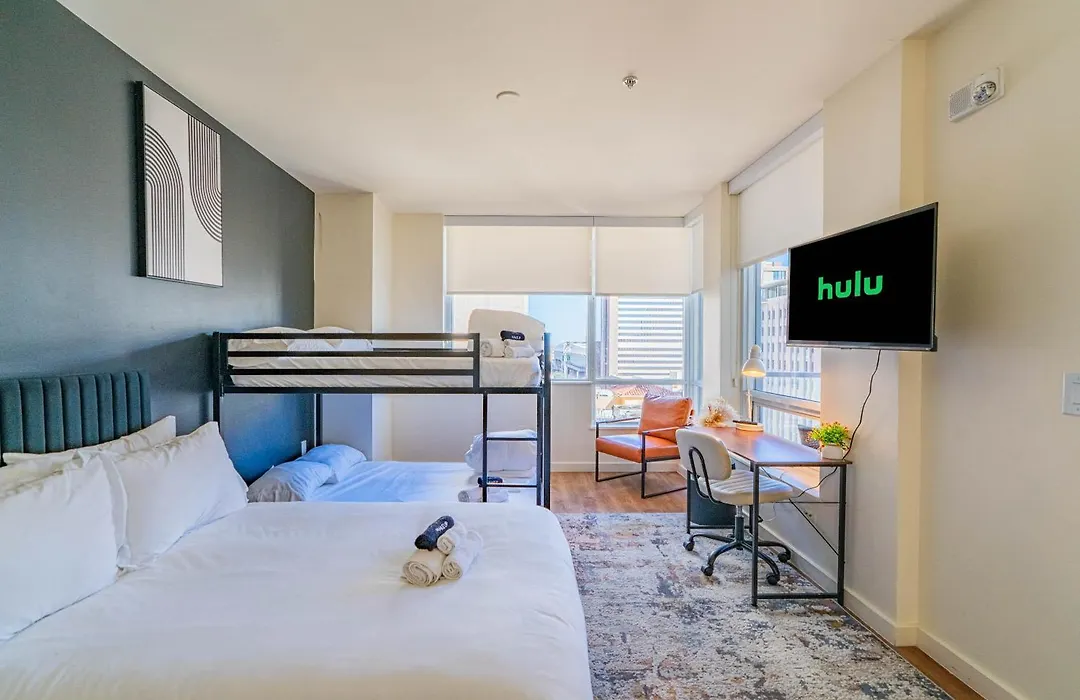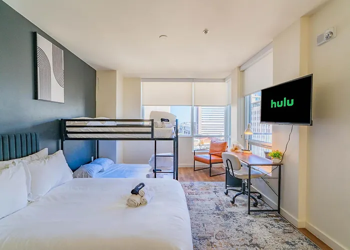 Serene Haven Dt Highrise, Gym, Pool, Parking, W-D, Golf apartment comes with oven and a dishwasher available in an equipped kitchen. 3rd St & Taylor St bus stop is right near the apartment.